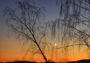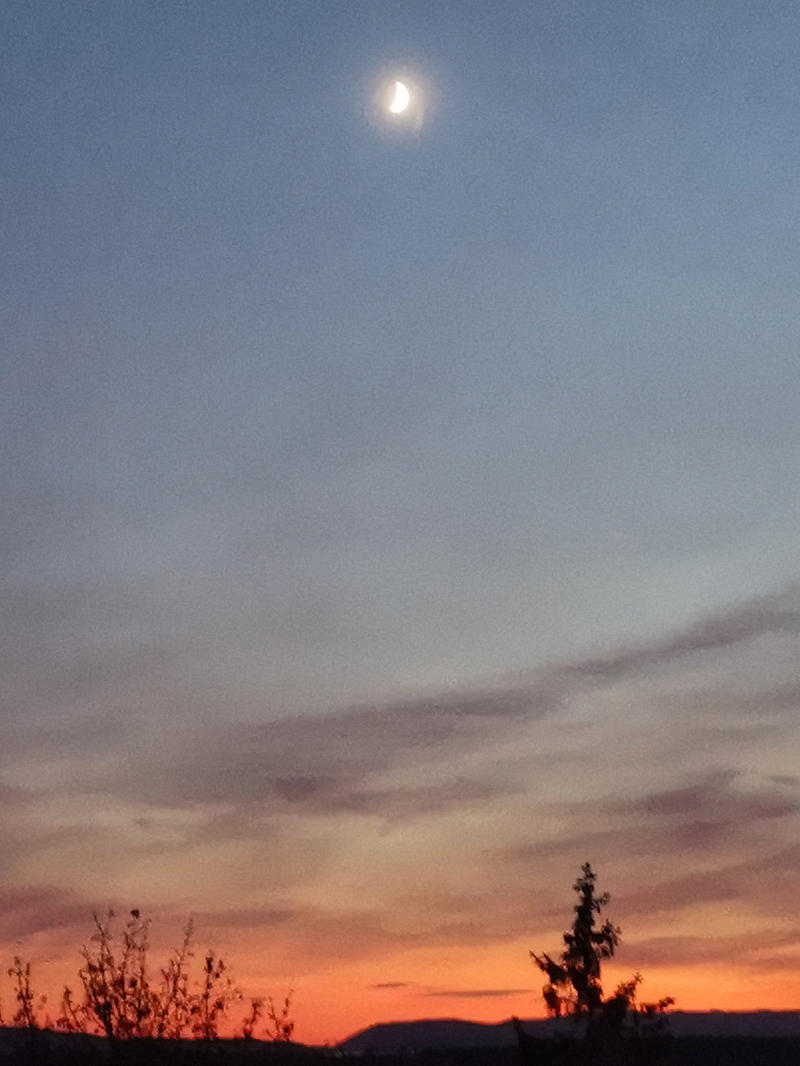 Nyttårsaften var himmelen rolig, med månen høyt hengende over solnedgangen:
