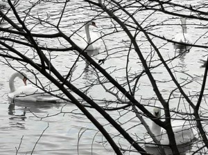 I dag fanget jeg øyeblikket da to svaner møttes i et kyss under en bro jeg gikk over. Jeg så dem svømme mot hverandre og sto klar med kameraet. Det var en and på bildet også, men den fjernet jeg med Healing-verktøyet i Snapseed. Bildet kunne godt vært skarpere, men det fikk meg til å smile.